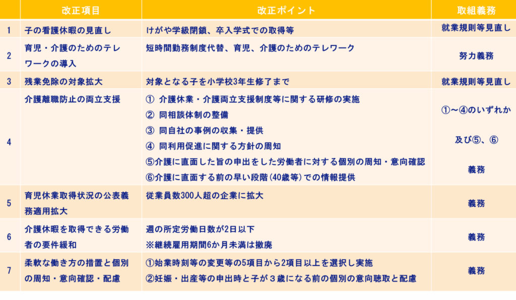 令和7年4月及び10月、育児・介護休業法の改正により、介護離職予防の取組みが企業の義務となりました。